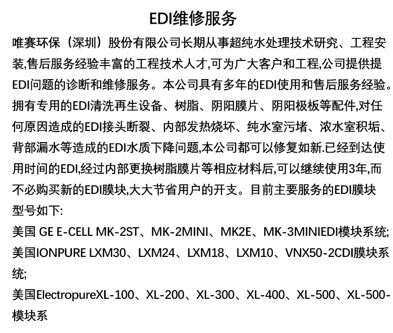EDI模塊     EDI模塊維修進(jìn)口樹脂+膜片 1:1進(jìn)口品質(zhì) 高配不高價